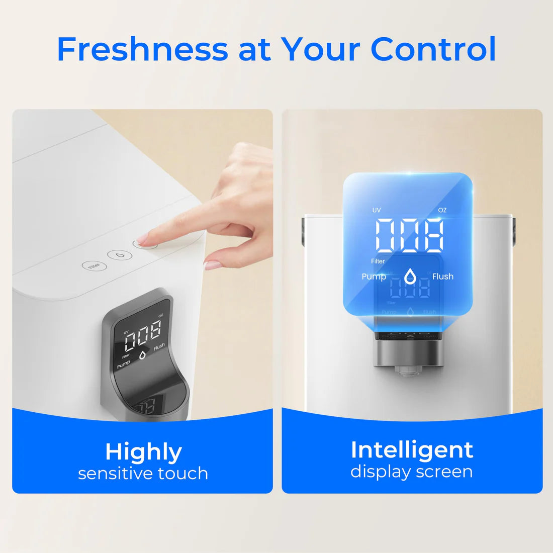✔️ Intelligent touch-screen display – Easy access to filter status, TDS readings, and preset water volumes